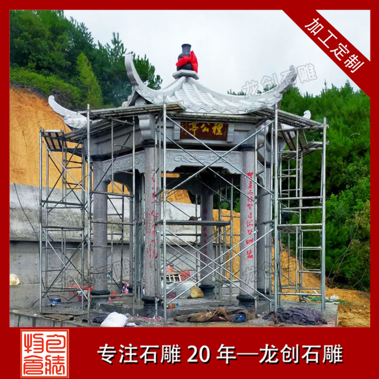 石雕亭子的平面組成比較單純,除柱子、坐凳(椅)、欄干,有時也有一段墻體、桌、碑、井、鏡、匾等。
