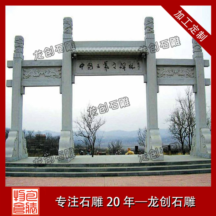 2、現(xiàn)代石雕牌坊要注意和實(shí)地環(huán)境的結(jié)合。現(xiàn)代化的石雕牌坊建筑可以是在休閑區(qū)域,也可以是在商業(yè)廣場(chǎng),還可以在景區(qū)內(nèi)建造,常見(jiàn)的就是在仿古街的入口處修建石雕牌坊,既能夠體現(xiàn)古色韻味又能夠吸引游人的關(guān)注。如村莊牌坊的修建,就要和村莊的風(fēng)俗文化相結(jié)合,只有這樣才能和當(dāng)?shù)丨h(huán)境文化融為一體。無(wú)論是在哪里進(jìn)行建造石雕牌坊,一定好和當(dāng)?shù)氐沫h(huán)境進(jìn)行有機(jī)的結(jié)合,這樣才能讓建筑和環(huán)境融為一體,才能讓建筑為周?chē)木吧珟?lái)亮點(diǎn)。