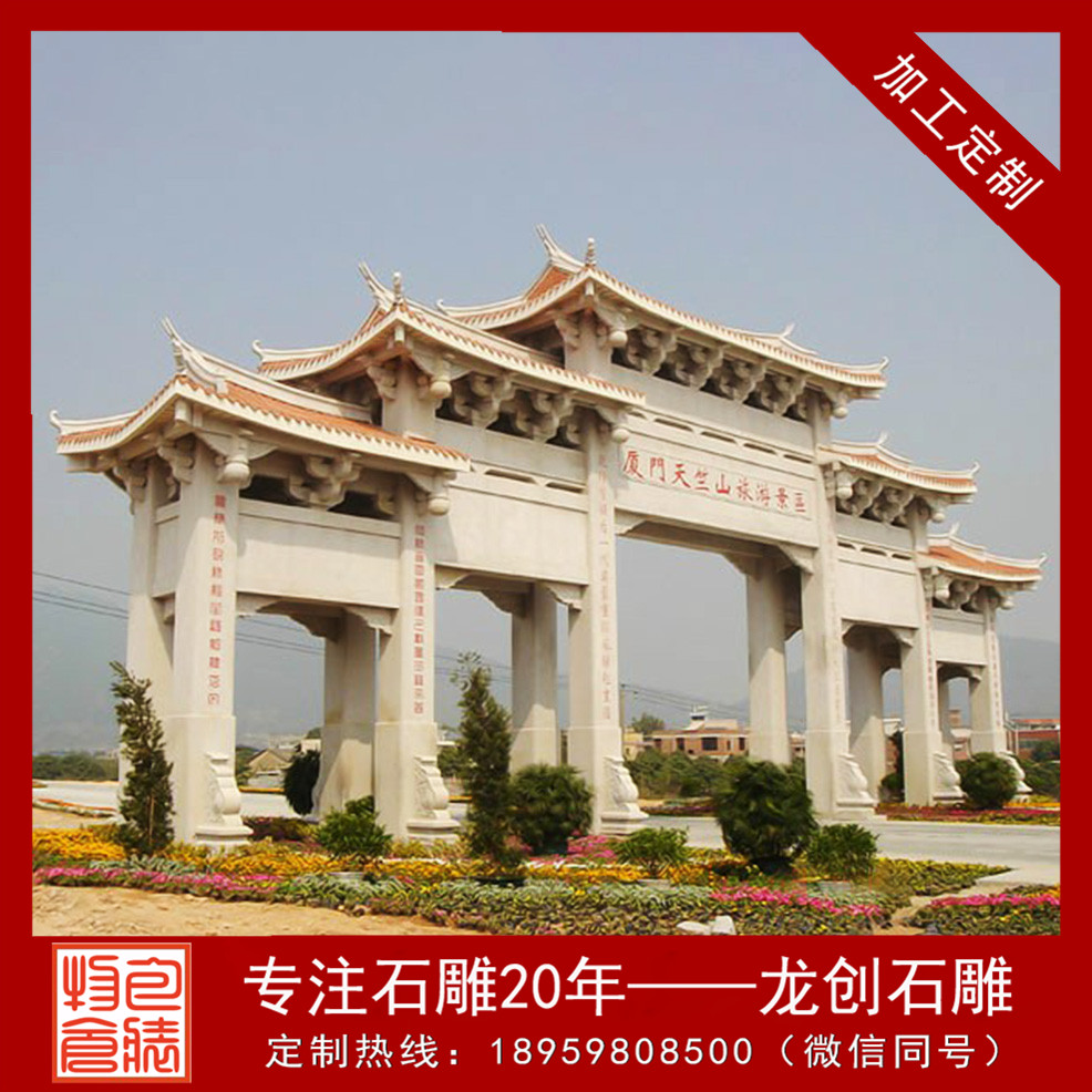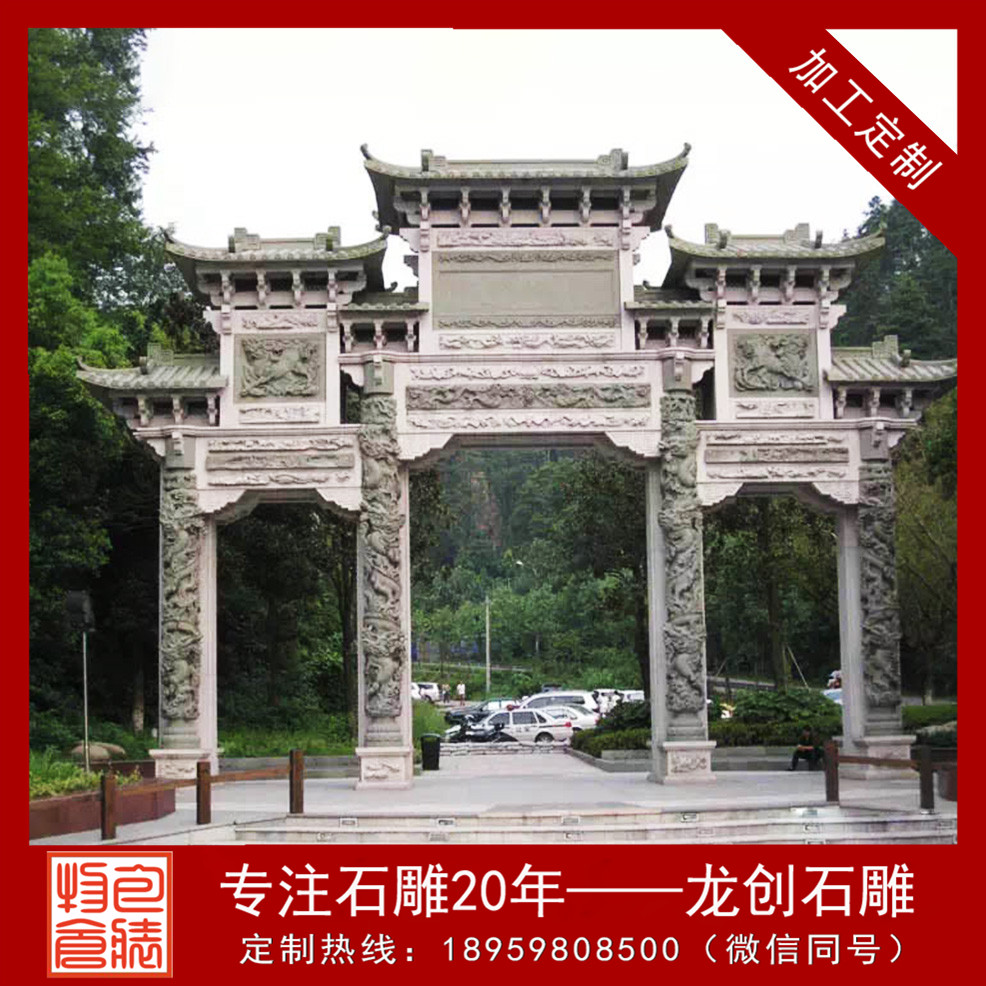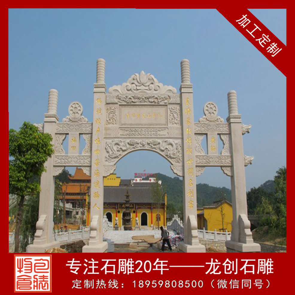 石雕山門是漢族傳統(tǒng)建筑中非常重要的一種建筑類型,用花崗巖修建的石雕山門,是封建社會為表彰功勛、科第、德政以及忠孝節(jié)義所立的建筑物。也有一些宮觀寺廟以山門作為山門的,還有的是用來標(biāo)明地名的。又稱牌樓,為門洞式紀念性建筑物,宣揚封建禮教,標(biāo)榜功德。建筑是凝固的歷史。