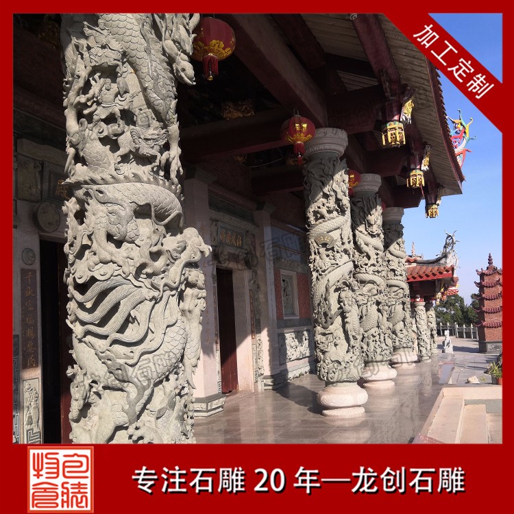 石龍柱一種可以安裝在廣場、公園、景區、村莊路口和寺廟中的大型石雕工藝品,它又分為龍柱、風景柱、圖騰柱、十二生肖柱不同的產品它的工藝和價格就不同,就拿我們常見的寺廟祠堂石龍柱來說吧,它就有好幾種做工每種做工的價格都不一樣,有很多老板在選寺廟石龍柱廠家的時候只看重了價格便宜,卻忽略了產品的做工和質量,買回去了質量差的產品而不知道,要想買到質量好,做工好的石龍柱就要先了解石龍柱。