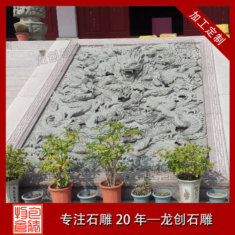 九龍壁浮雕通常是以九條形態(tài)各異的龍為主要的雕刻形象,為什么是九條呢?這要追溯到中國(guó)古老文化元素,"九"是九五之尊的意思,在中國(guó)的數(shù)字理念中,九是zui高位,用九條龍的形象來雕刻,在一定程度上就已經(jīng)彰顯出雕刻本身的價(jià)值所在。而用"龍"的形象,其實(shí)在古中國(guó)也是有自身的講究,龍作為上古神話傳說中的靈獸,是四靈之一,掌管人間的風(fēng)雨變化,在人們心中有著崇高的寓意,尤其是在帝王家,龍是專屬形象,代表了至高的位置和權(quán)威。這樣的一幅九龍雕刻,就已經(jīng)彰顯出其恢弘磅礴的氣勢(shì),讓我們?cè)谄渲蓄I(lǐng)略到威武與雄壯,也是借著這樣的作品來詮釋我們的民族精神和民族氣節(jié)。