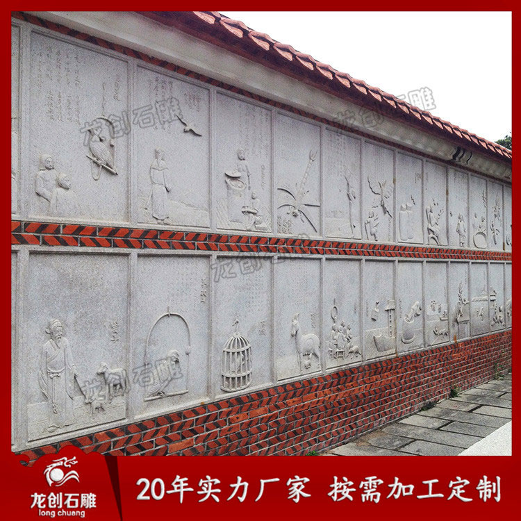 我們常說的浮雕的高度則是指浮雕zui高的地方,浮雕高度越高,整個浮雕墻的立體感就越強。在浮雕文化墻的高矮過度階段也不能做得忽高忽低,而是由石匠師傅根據對這個畫面的了解,再從全局把握,適當的調整各個地方的浮高浮低程度。現在許多浮雕都是用電腦設計相關數據,直接采用機器雕刻,雖然價格可以便宜很多,但是很難形成一個有機的整體,比較機械化。