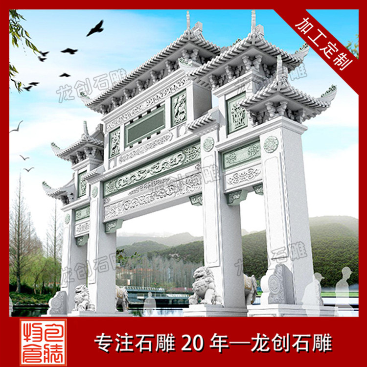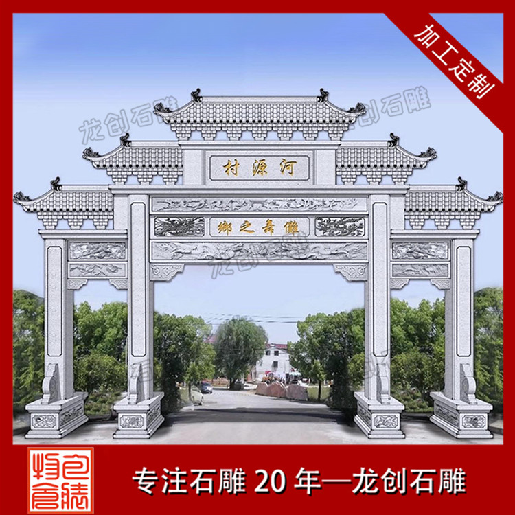 雕刻精美好看的中式景觀村口石牌樓,作為鄉村傳統文化中重要的組成部分,具有鮮明的地域性和文化性,對形成村莊格局和豐富鄉村空間形態,都產生了非常重要的影響。新村石牌坊、村口石牌樓是農村社會傳統文化的物質載體,記錄了農村地區的重要事件,同時也反映了新時期農民的思想道德觀念,以及對美好生活的期盼,也代表著新農村新形象。