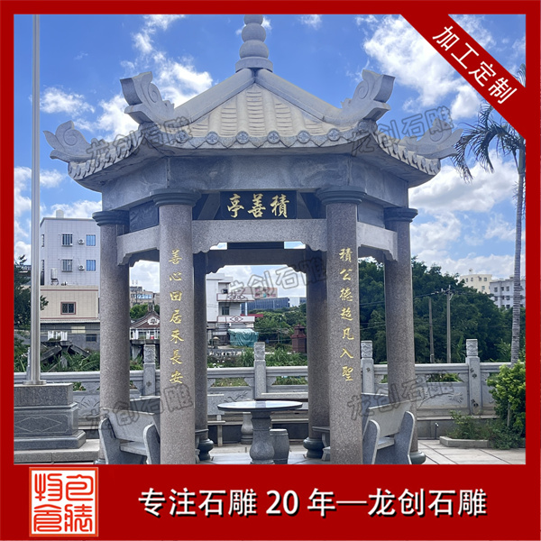 在實際應用中,六角涼亭適合置于庭院中心、水岸平臺或景觀軸線的節點位置。常見尺寸為檐口直徑3-4.5米,地面至寶頂高度4-6米。選購時應重點關注石材的質地均勻度、構件加工精度及結構安全性,確保各連接部位結合緊密。安裝時需做好基礎墊層,采用預埋件與亭體可靠連接。合理的亭體設計與布局能形成良好的觀景視野,為園林空間增添富有傳統文化韻味的休憩場所。