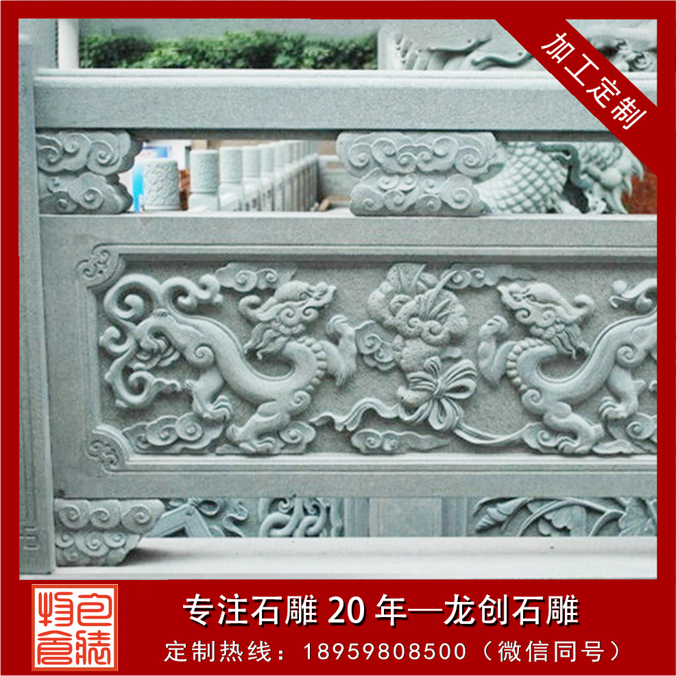一、安全防護(hù):石雕欄桿一般有兩種類(lèi)型,一種是用石頭雕刻成普通欄桿的造型,望柱加上橫梁,下面是花紋的雕飾欄板,這是比較基礎(chǔ)的款式。還有一種是把欄桿做成各種弧形,圓形,方形的墻體結(jié)構(gòu),然后在這樣的墻面上加工出各種圖案。當(dāng)然這兩種類(lèi)型的用途都是在展示了石雕藝術(shù)的美感外同時(shí)兼顧了石雕欄桿安全防護(hù)的作用。