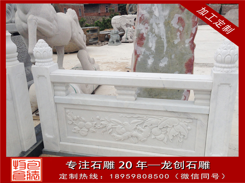漢白玉石欄桿的制造安裝工藝是先人留下的寶貴財(cái)富,許多工藝的口訣都是工匠在操作中形成了自己的習(xí)氣,并一代代口傳親授,薪火相傳。漢白玉石欄桿具有很強(qiáng)的表現(xiàn)力,可雕刻出各種古典式樣的圖案。有著時(shí)尚、漂亮、環(huán)保、抗老化、不變形的功能優(yōu)點(diǎn),可廣泛用于市政、水利、公園、交通橋梁等護(hù)欄工程。