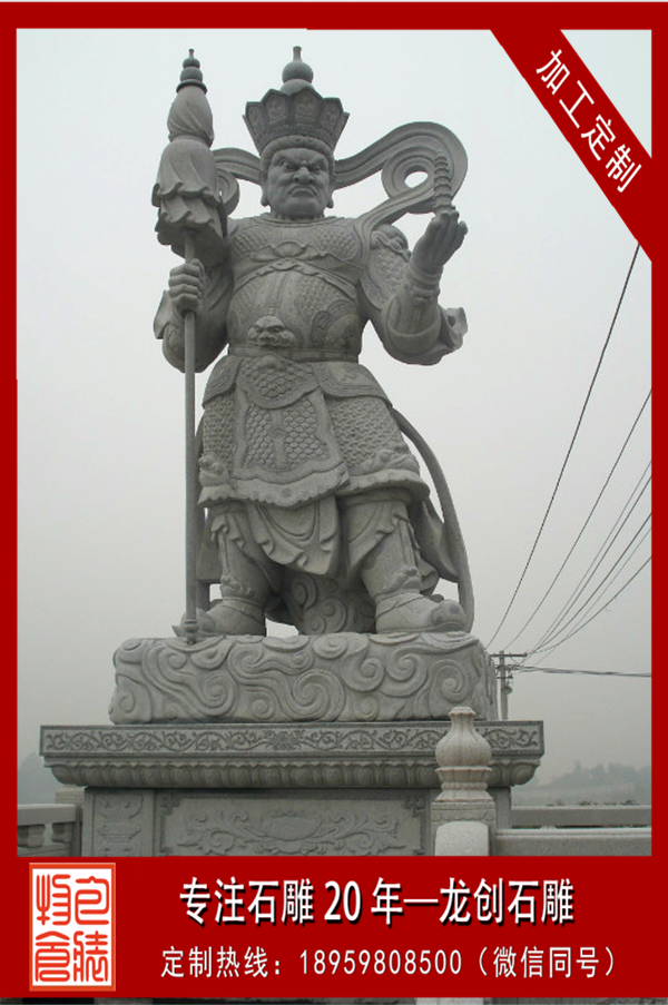 四大天王是佛教的護法天神。四大天王,又稱護世四天王,是佛教三十三天中的四尊天神,位于第1重天。第1重天又叫四天王天,通常分列在凈土佛寺的第1重殿的兩側,天王殿因此得名。坊間傳聞四大天王護世于須彌山山腰上的四天。東方持國天王,持琵琶,護持東勝神洲;南方增長天王,持劍,護持南贍部洲;西方廣目天王,持蛇或赤龍,護持西牛賀洲;北方多聞天王,持傘,護持北俱蘆洲。