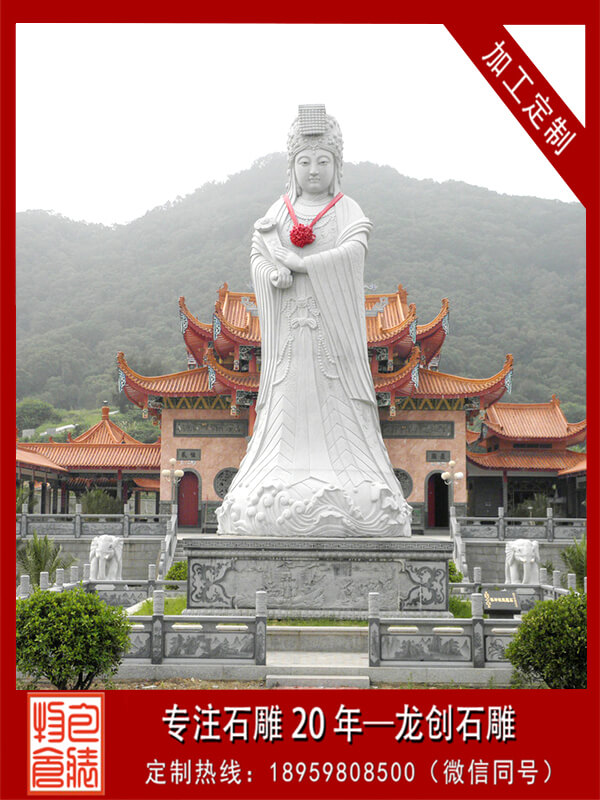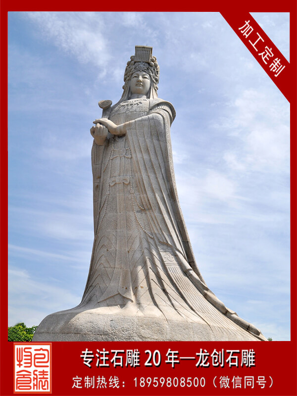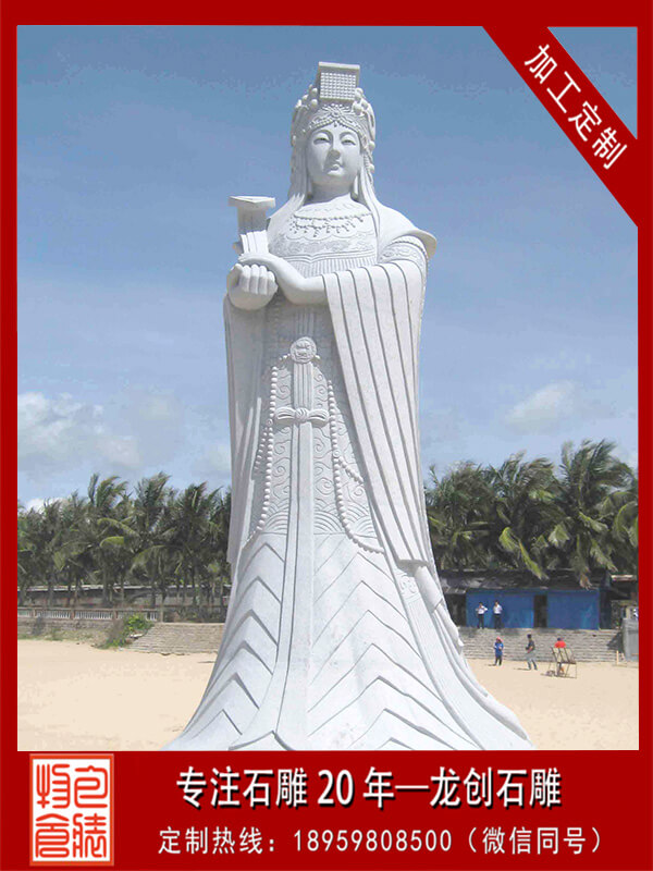 媽祖石雕,以中國東南沿海為中心的海神信仰,又稱天上圣母、天后、天后娘娘、天妃、天妃娘娘、湄洲娘媽等。這一信仰的主體據說是由真人真事演變而來的。考察媽祖的生平得知,這一信仰來自民間傳說。首先是傳說,然后是傳說的歷史化和神化,最后形成普遍的媽祖信仰。